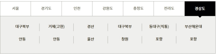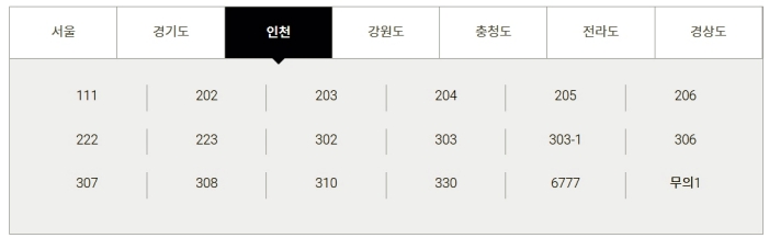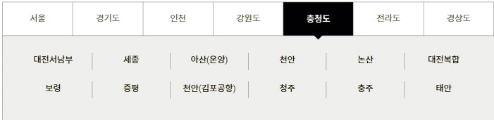 강원, 충청, 전라, 경상도의 경우에는 지역별로 운영하는 곳이 있었습니다. 따라서 이 곳에서 출발하지 않는다면 가까운 출발 지역으로 먼저 도착해야 할 것입니다.