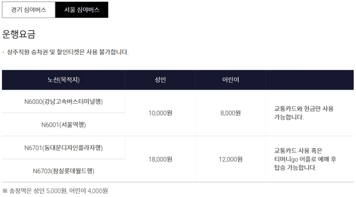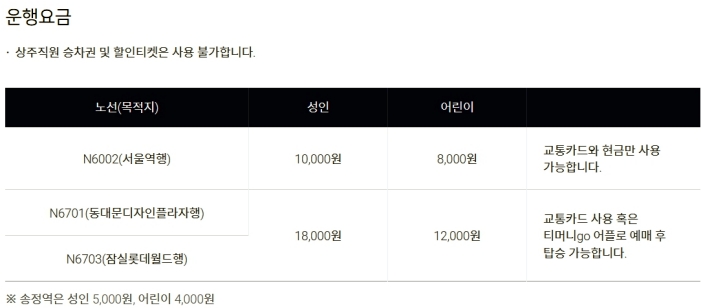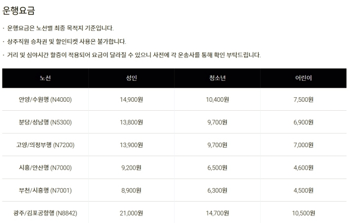운행 요금은 일반 버스보다는 높은편입니다.