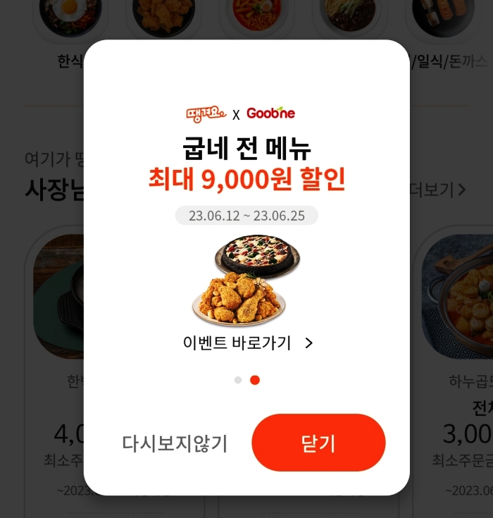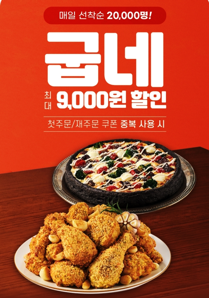 이곳에서는 지금 사람들을 모으기 위해서 다양한 혜택들을 제공하고 있습니다. 그 중에 있어서 가장 메인으로 밀고 있는 것이 바로 굽네치킨인데, 무려 첫 주문의 경우에는 9,000원까지나 세이브가 가능합니다.