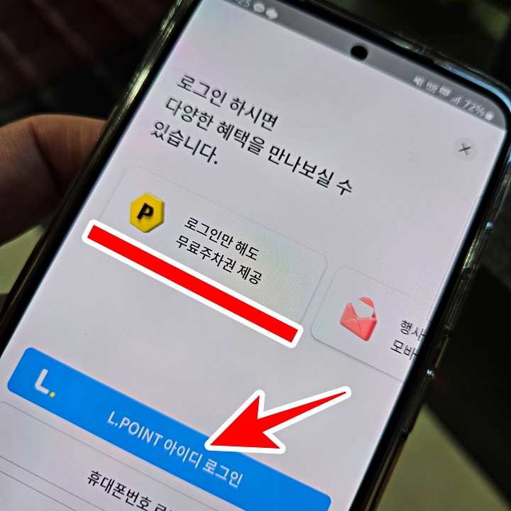 그다음에 로그인을 하면 되는데 여기만 보더라도 무료 주차권을 제공한다는 정보를 확인할 수 있을 것입니다.