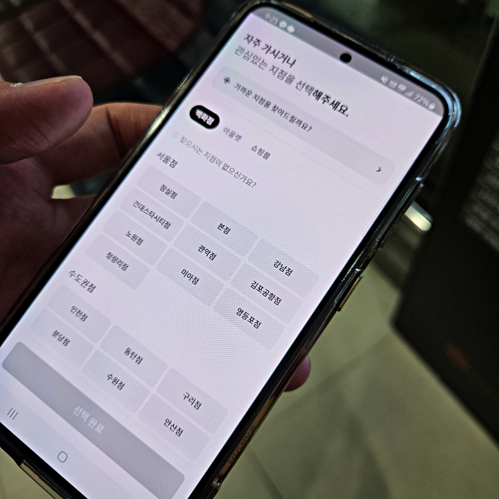 방법은 간단합니다. 첫번째로 해야 할 일은 당연히 앱을 설치하는 것입니다. 플레이스토어나 앱스토어에서 롯데 백화점 어플을 받습니다. 그다음 내가 자주 가는 지점을 등록해야 하는데 이러한 부분은 추후에 수정할 수 있기 때문에 너무 고민하지 마시고 가볍게 선택한 다음 진행을 해줍니다.