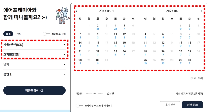 에어프레미아 호치민 프리미엄 vs 이코노미