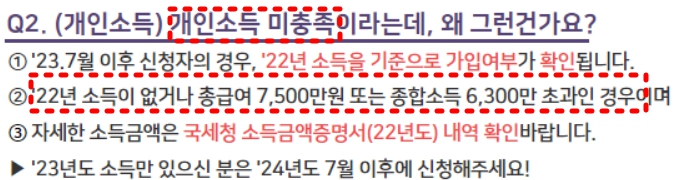 두번째는 소득 제한입니다. 전년도 총 급여행이 7500만원보다 적어야 합니다. 이 수치는 종합소득 6300만원 이하와 동일하게 봅니다.