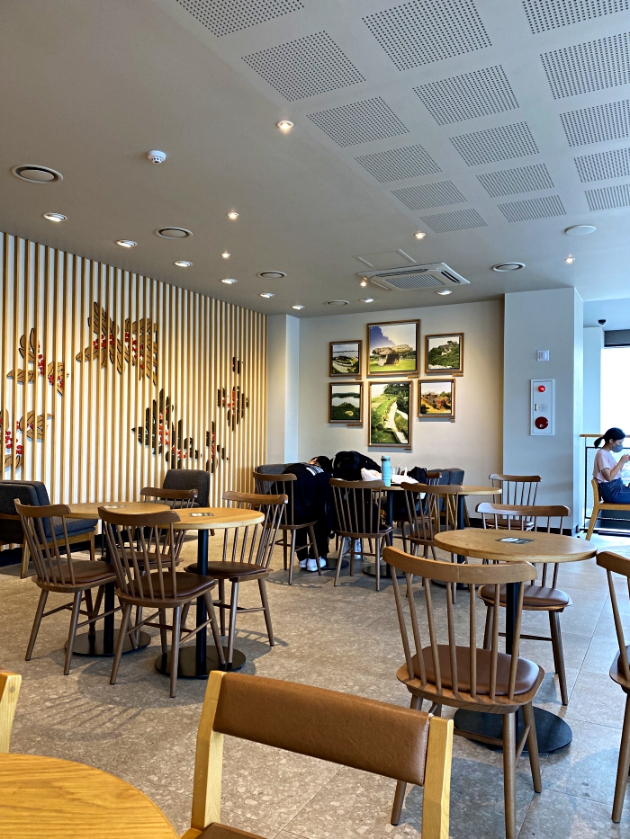 The unique feature of this Starbucks store is exactly this dolmen table.